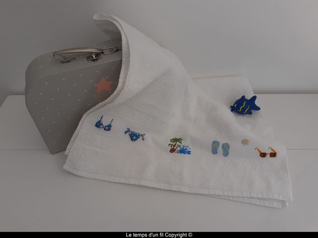 Serviette de bain Bouchara brodée à la main qui aura toute sa place dans votre salle de bains