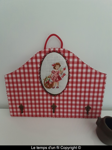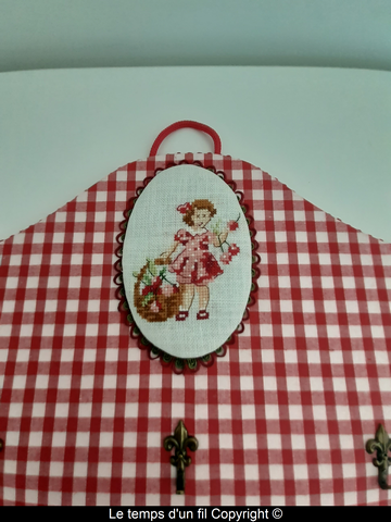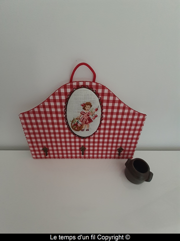 Accroche torchons réalisé sur une plaque de bois recouverte de tissu coton vichy rouge